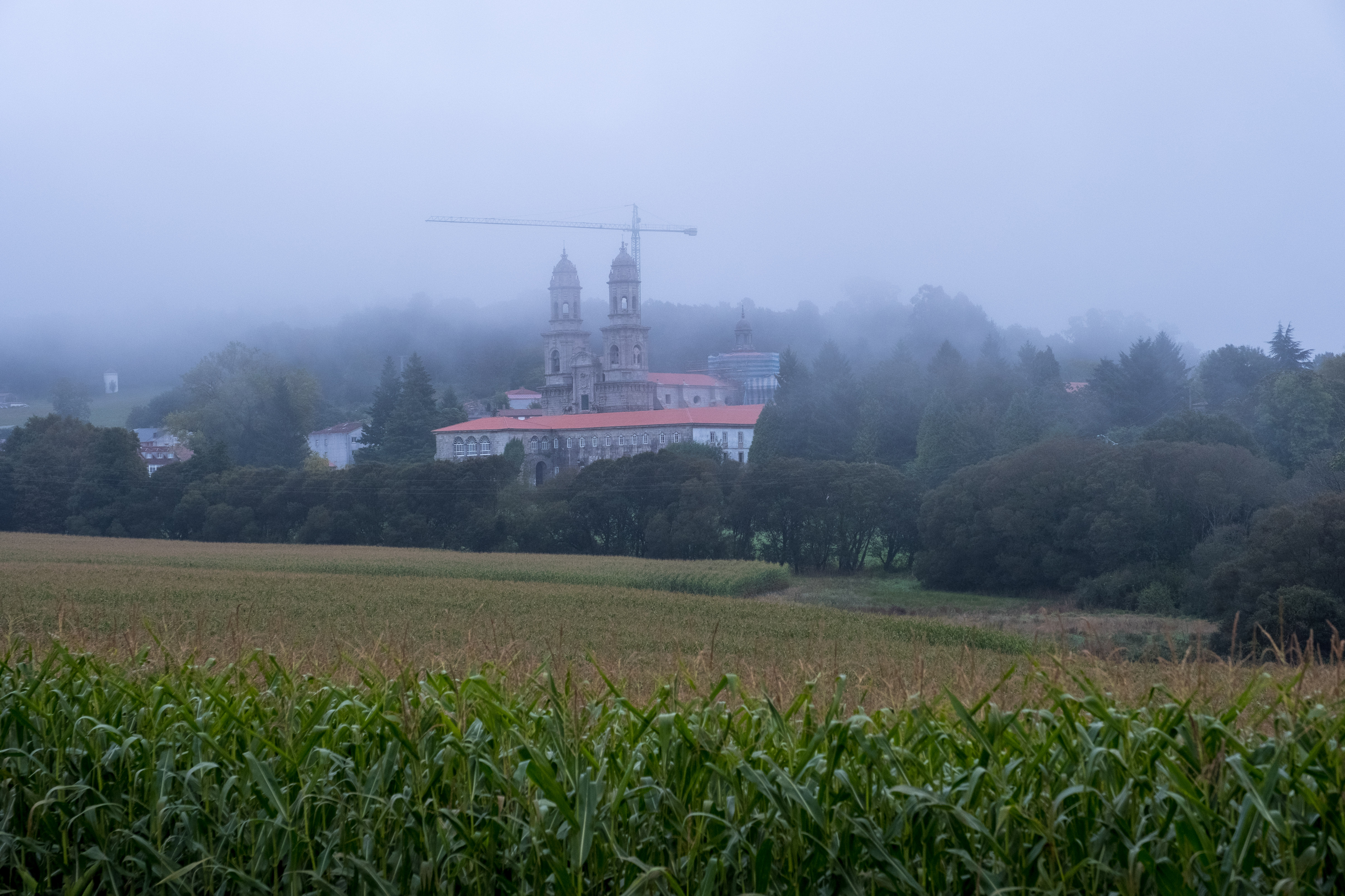 A misty morning view looking back at Monasterio de Sobrado Published November 2, 2019 at 5936 × 3957 in Camino del Norte – Day 29 – Sobrado dos Monxes to Santa Irene, 33km Next → A misty morning view looking back at Monasterio de Sobrado