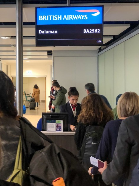 We’re flying direct from London Gatwick to Dalaman airport and as we get in quite late, we’ve arranged a private transfer from the airport to our hotel in Fethiye. It’s a rainy November day in London and we’re both looking forward to warmer days ahead in Turkey.