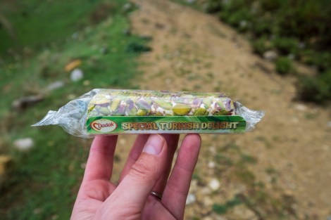 As soon as we turn off the road, we begin our big climb of the day, up Mount Moses (Musa Dağı) along a good forest path. According to the guidebook, the trail was once used by camels to reach the mountaintop pastures. The ascent lasts for 5km and is much easier than the descent which is along slippery moss-covered rocks. I’ve had plenty of experience of walking on similar terrain on the Kumano Kodo, but I wasn’t expecting it here!