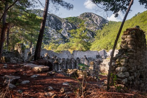 At the bottom of the mountain we enter the ruins of the ancient Lycian city of Olympos, said to be named after the nearby Mt Olympos (Tahtalı Dağı). In the 2nd Century BC, Olympos was an important Lycian city before falling victim to piracy and then subsequently conquered by the Romans, Venetians, Genovese, and Ottomans. The ruins on both sides of the river include a theatre, temple gate, necropolis, sarcophagus, bathhouse, church, basilica and more. I need a full day to explore but make do with an hour or so.