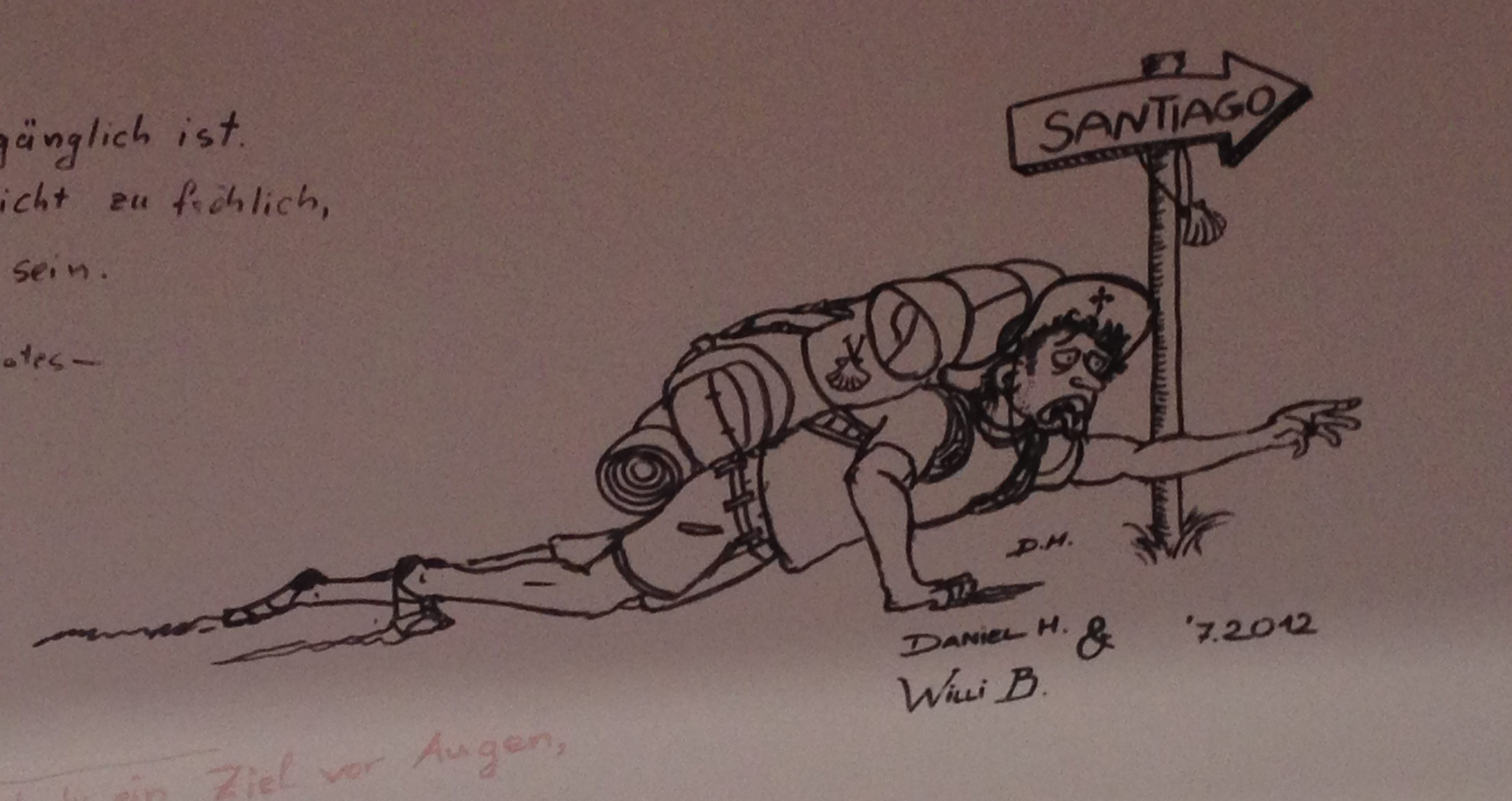 IMG_2554_edited-1 Published August 24, 2014 at 2976 × 1578 in Camino Frances ← Previous Next → Art in the Casa de Jesus albergue in Villar de Mazarife. Like Loading...