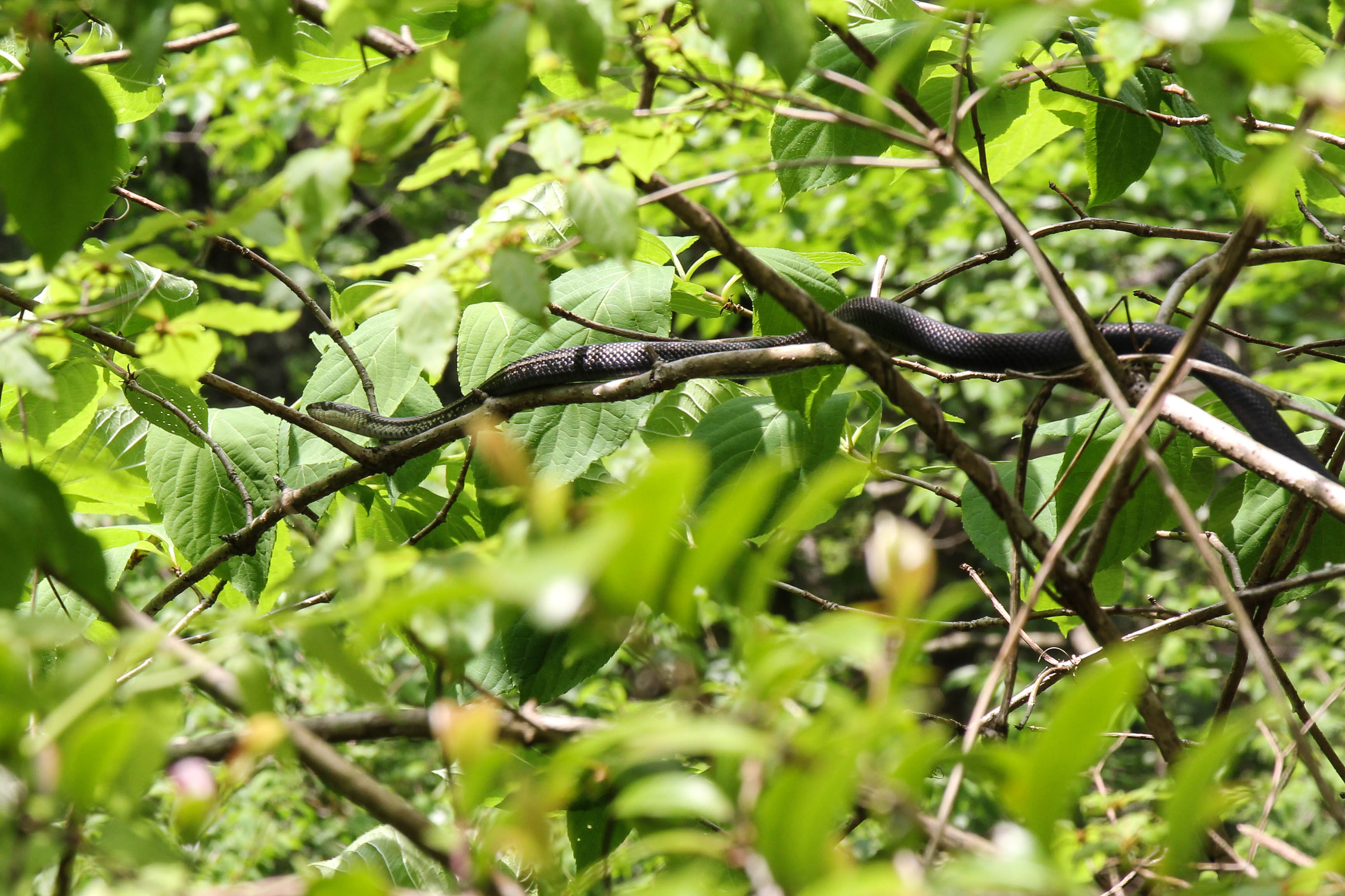 Chikatsuyu to Hongu – Black snake just after Jagata Jizo Published June 4, 2017 at 3464 × 2309 We gave each other a fright and he retreated up a tree