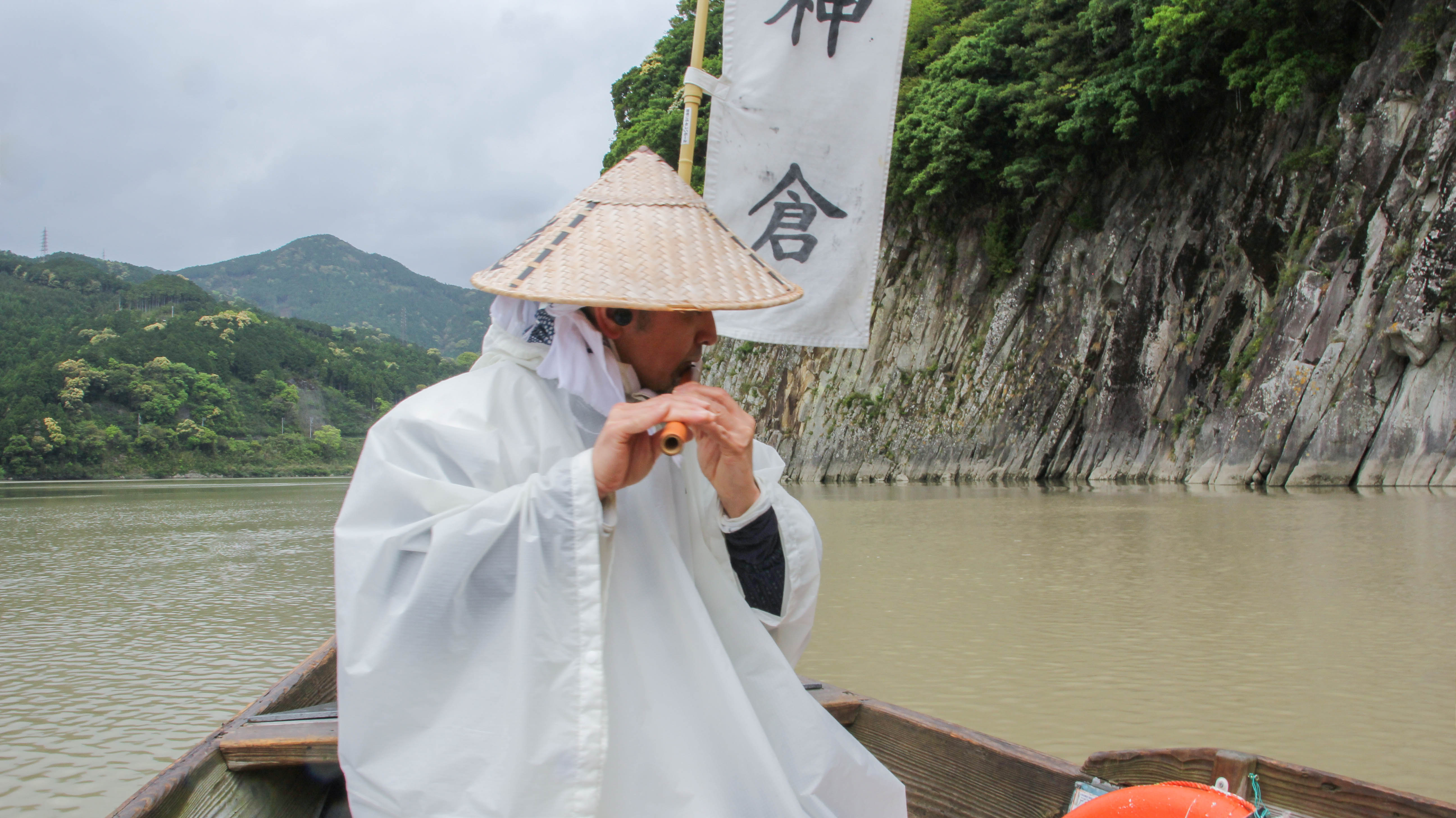 Hongu to Hayatama by boat-4 Published June 5, 2017 at 5184 × 2912 Our guide playing us a tune on his bamboo flute