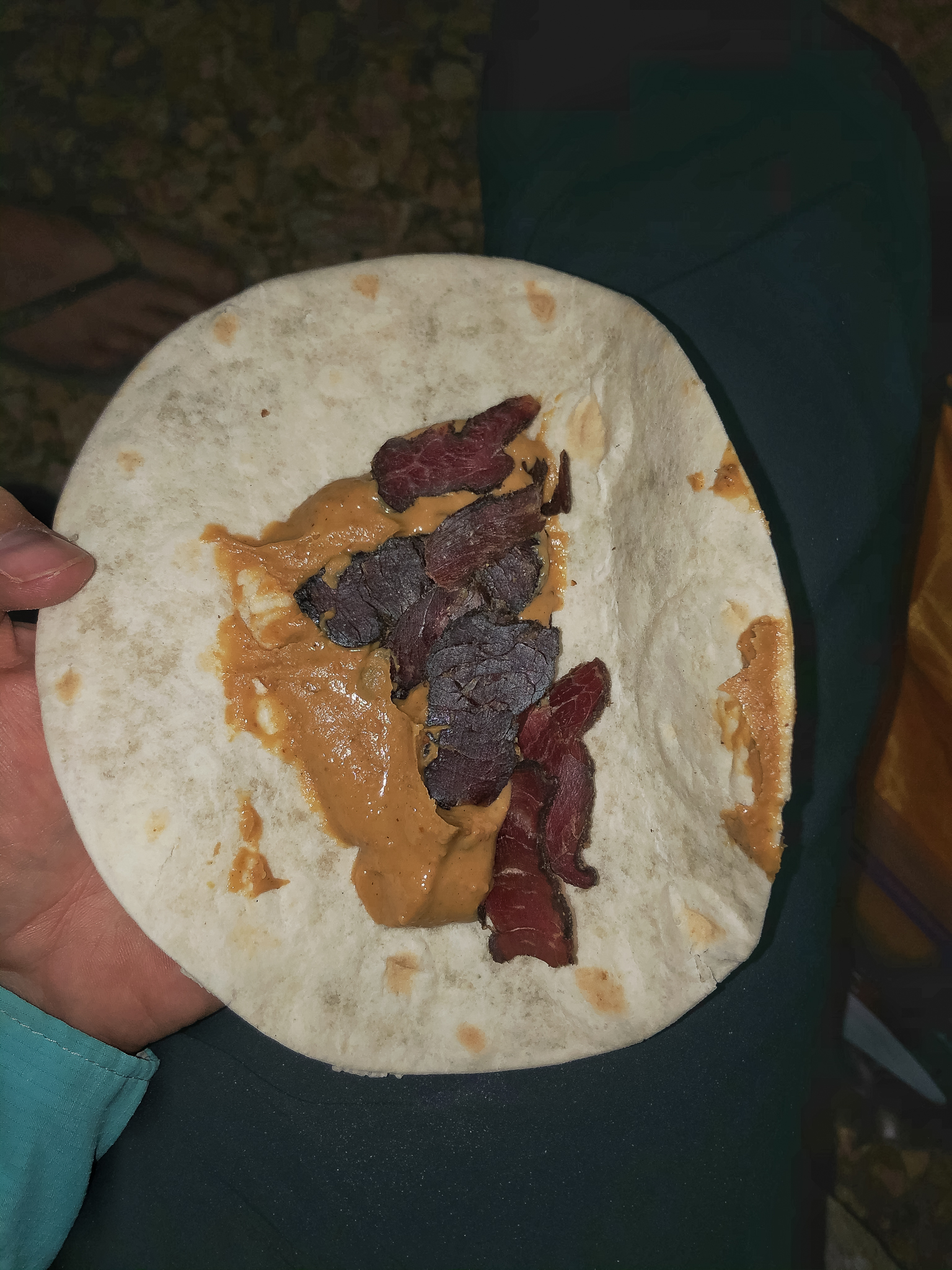 Tonight’s dinner – peanut butter and jerky tortilla on the Lycian Way Published January 3, 2020 at 1536 × 2048 and for my main meal – peanut butter and jerky tortilla