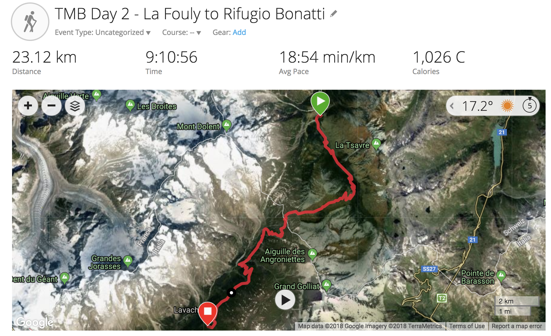 TMB Day 2 – Garmin Connect Info Published September 2, 2018 at 1830 × 1116 TMB Day 2 – info from Garmin Connect